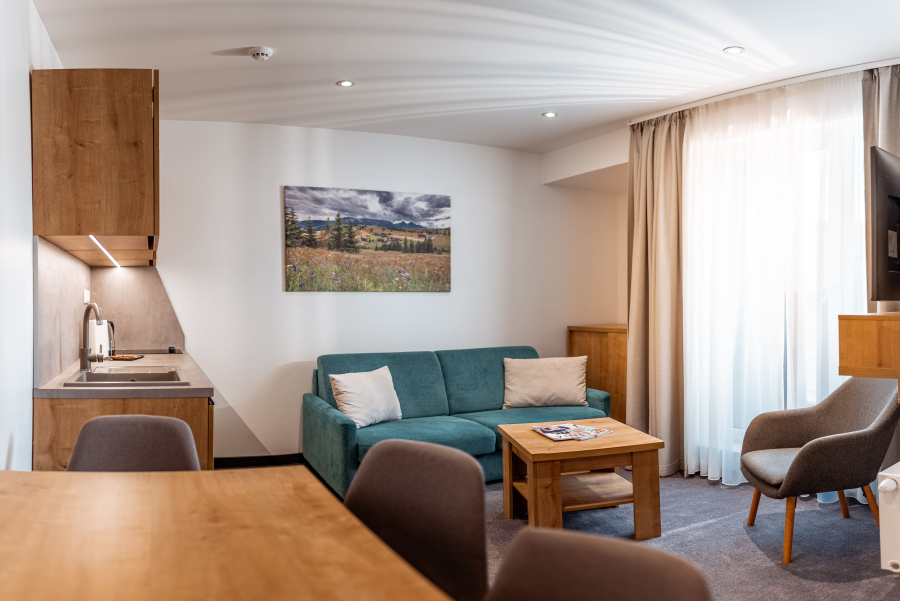Moderný útulný apartmán s plným vybavením pre pohodlnú dovolenku ponúka nerušený odpočinok po lyžovačke či turistike.