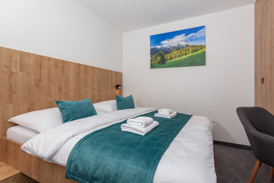 Moderná útulná izba s vybavením pre pohodlnú dovolenku ponúka nerušený odpočinok po lyžovačke či turistike.